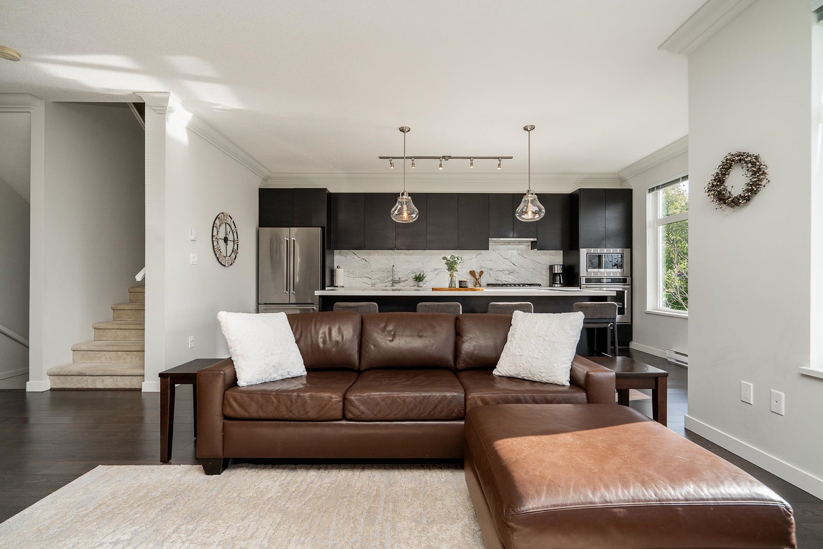 DUPLEX-STYLE END UNIT! Incredibly rare opportunity to own this stunning, 2500+ sq/ft 4-bed end-unit townhome with VIEWS in Polygon’s Colborne Lane. Offering spacious and modern living in sought-after Burke Mountain, with a bright and open plan, beautiful finishes, and large windows, providing plenty of natural light. The gourmet kitchen has stylish cabinetry and SS appliances, perfect for entertaining. The spacious primary boasts a private ensuite, while three additional bedrooms provide versatile space for guests or a home office. Side by side laundry with extra storage, massive finished basement, private patio, and ample parking - 2 covered in finished garage with slat walls and epoxy flooring, plus 2 on the driveway. Close to parks, schools, amenities & nature. Truly a rare find.